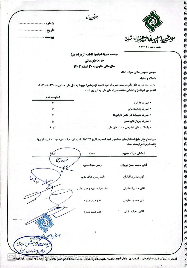 گزارش حسابرس مستقل به انضمام صورت های مالی سال 1403 به پیوست تقدیم میگردد.